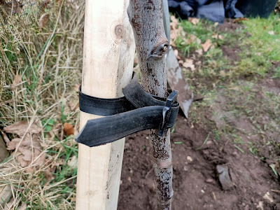 We also planted the flowering cherry trees gifted to us by the Betley Womens Instistute. They've been planted as a pair at the entrance to the paddock from the lawn. That way, they'll mark the entrance, and they will be seen from the house when they flower in May.