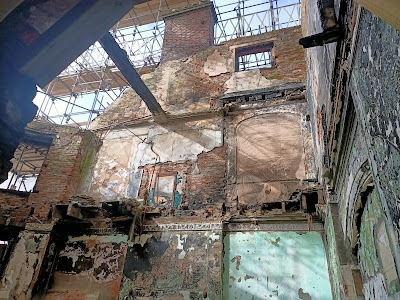 Nigel and I were over to show local borough councillors, Gary and Simon White around the shell of the building as part of a question-and-answer session. We kitted them out in hard hats and hi-viz jackets and took them in to view the test window units we’ve installed, and to show them the extent of the damage inside.