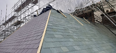 finishing tiling over Royds House. HP Windows, who are recreating most of the new